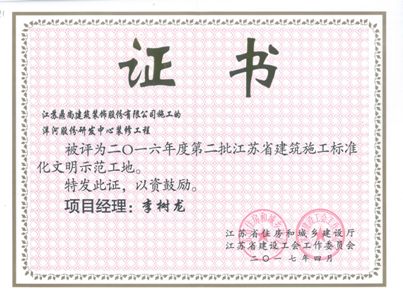 | 祝贺洋河股份研发中心装修工程 获得宿迁市2016年度三、四季度建设工程市级文明工地 |